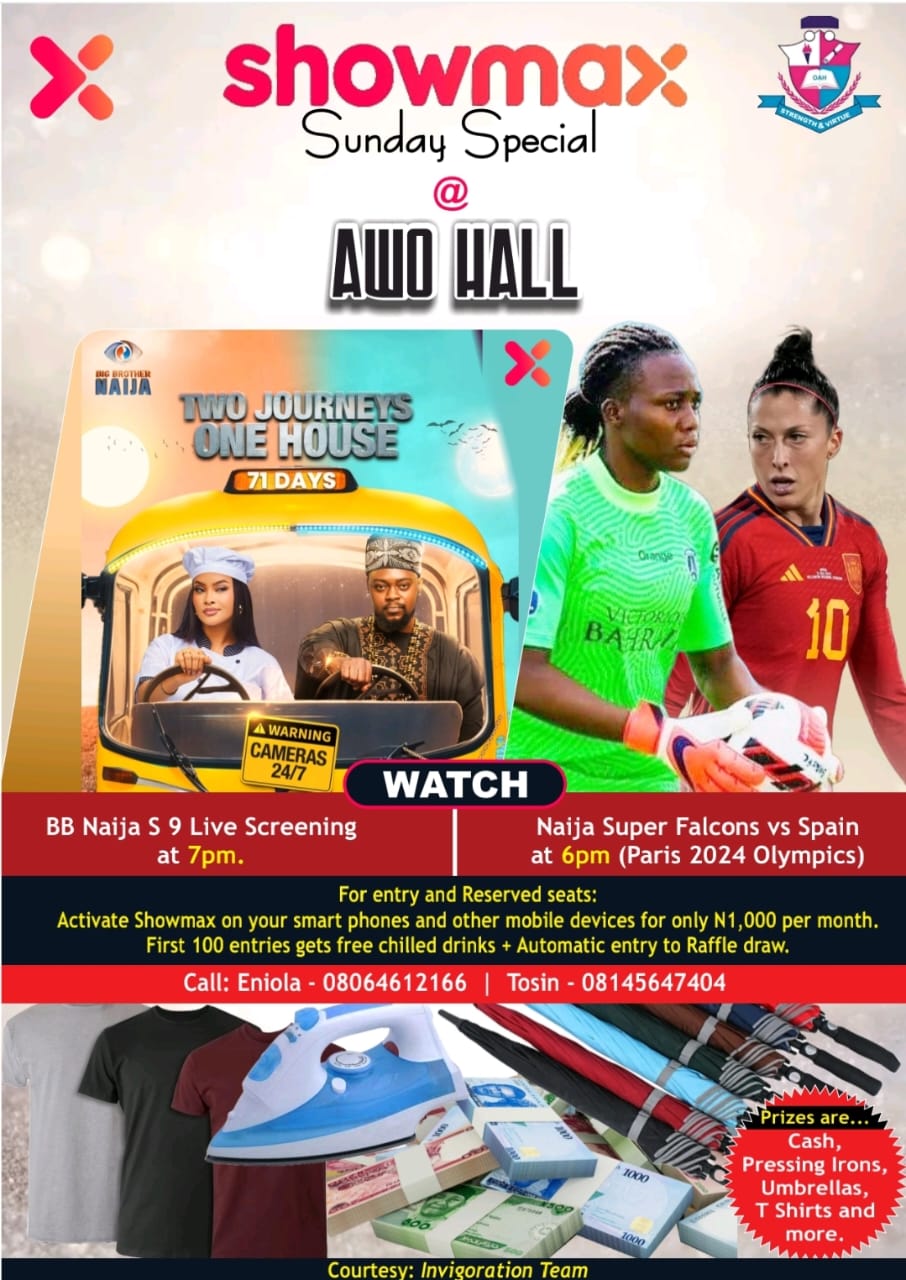 The showmax Sunday special at Awo hall which is to hold on 28th July, 2024 by 6pm has been canceled.